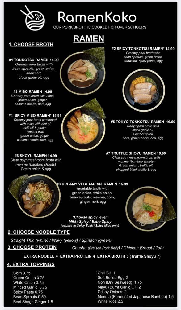 RamenKoko is a trendy ramen spot in Highland, CA, offering a variety of noodle and soup dishes. With options for delivery, takeout, and reservations, it caters to various preferences, including vegan and limited vegetarian choices. Known for its crispy tofu and creamy vegetarian ramen, customers rave about the flavorful and satisfying meals. The ambiance is described as nice with good music, making it a pleasant dining experience. Some popular dishes include the spinach noodles and spicy ramen with gyozas and takoyaki. The restaurant also stands out for its fast and friendly service. Overall, RamenKoko is praised for being a top choice for ramen lovers, with customers returning for their perfectly seasoned dishes and consistently high quality.